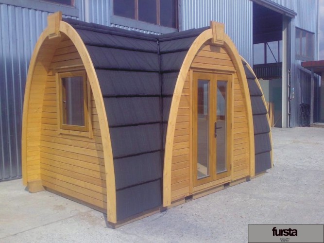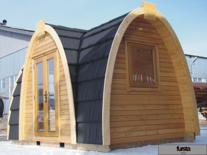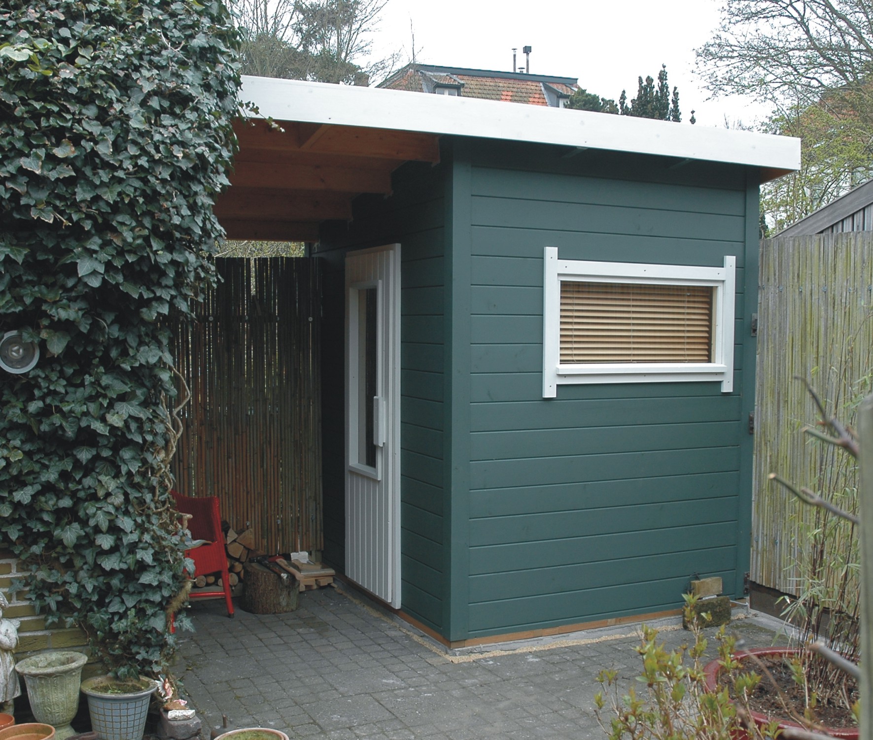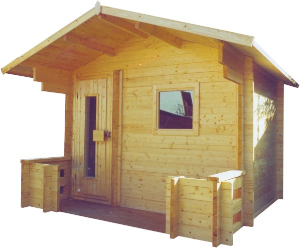 geïntegreerd in een tuinhuis dat is gemaakt van 28 mm dikke balken. Of in een blokhut met een